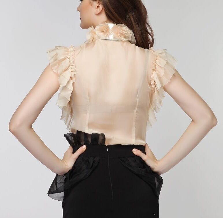 フリルステップフリルシースルーリボンブラウス ベージュ