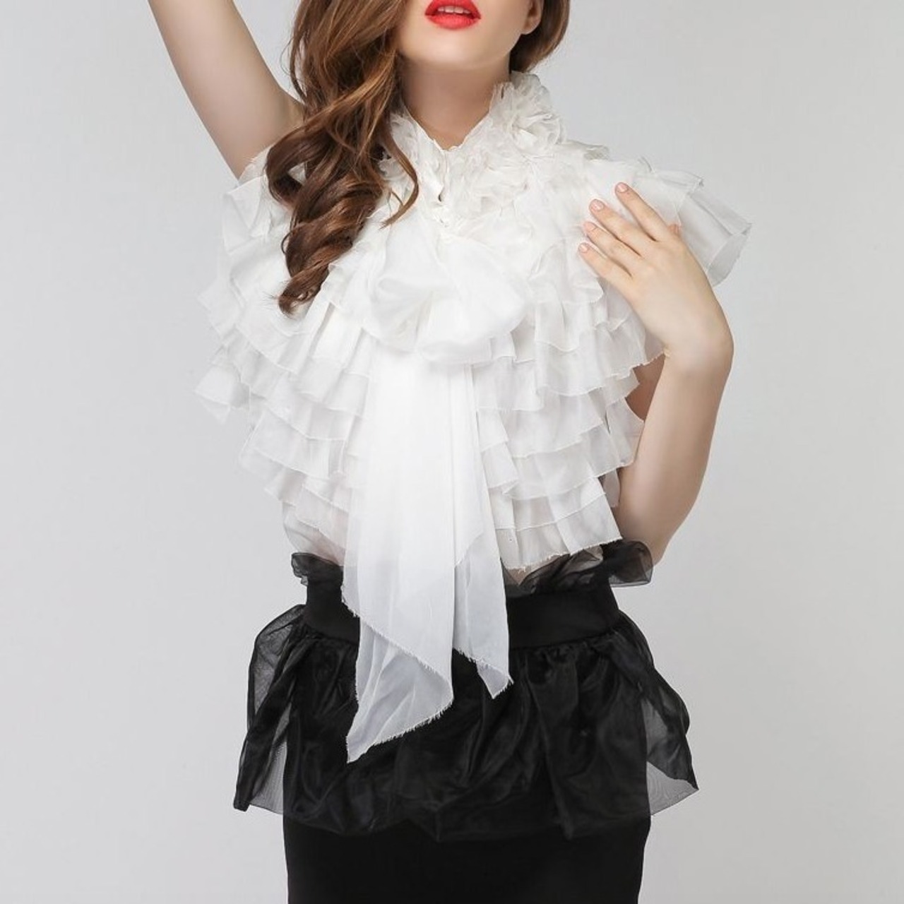 フリルステップフリルシースルーリボンブラウス ホワイト