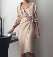トレンドネックラインターンデザインシャツワンピース ベージュ