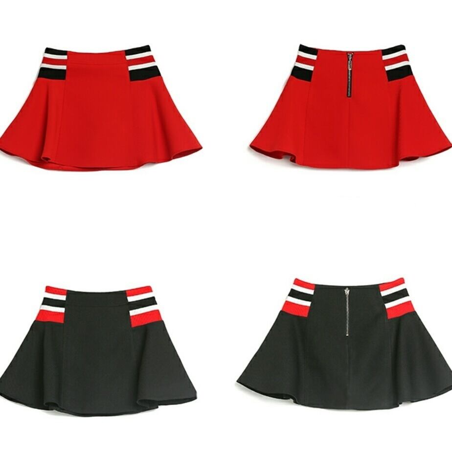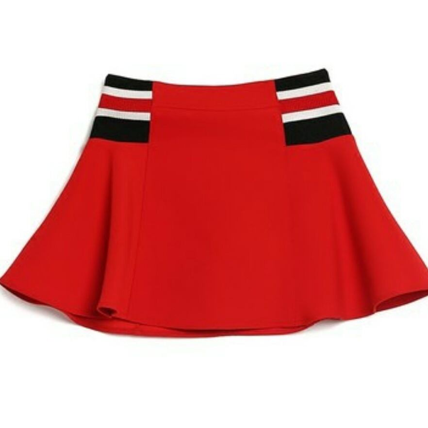 ウエストボーダーのメリハリフォルムサーキュラースカート レッド