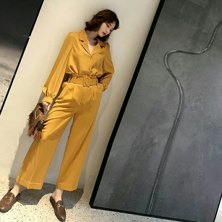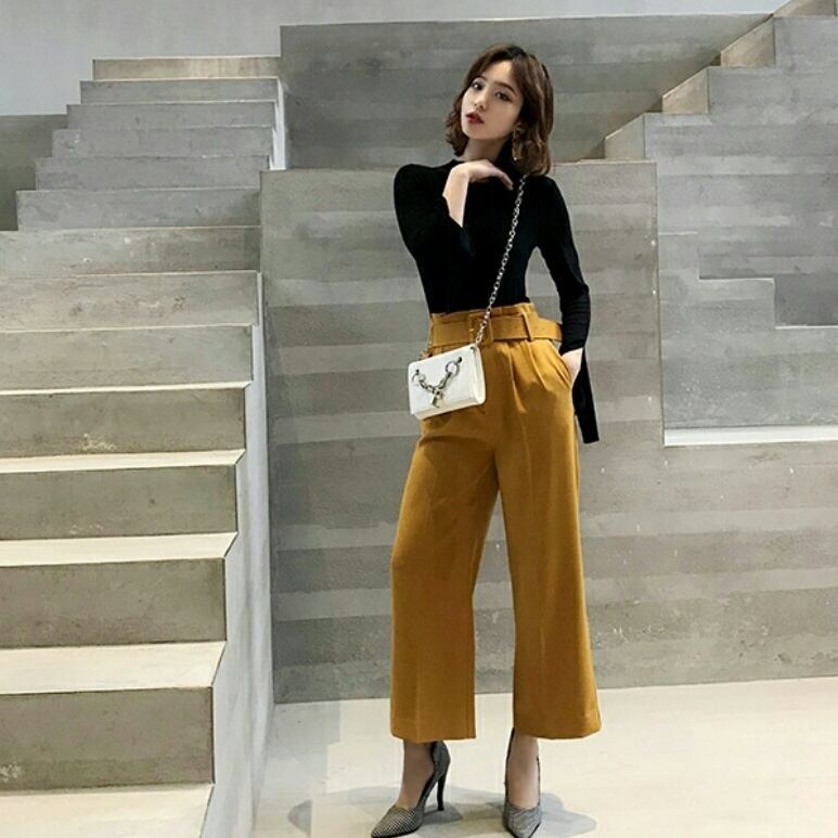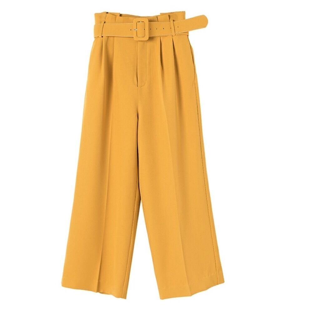 ハイウエストがポイント黄色のシンプルガウチョパンツ