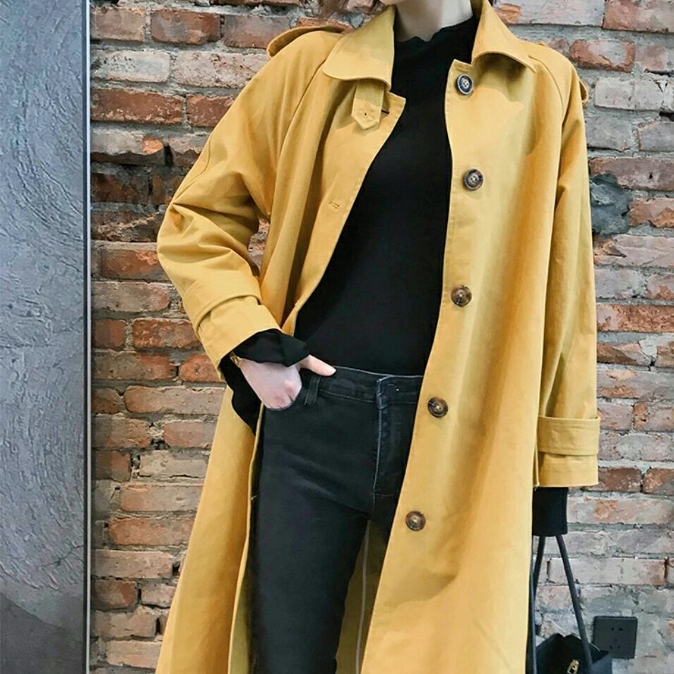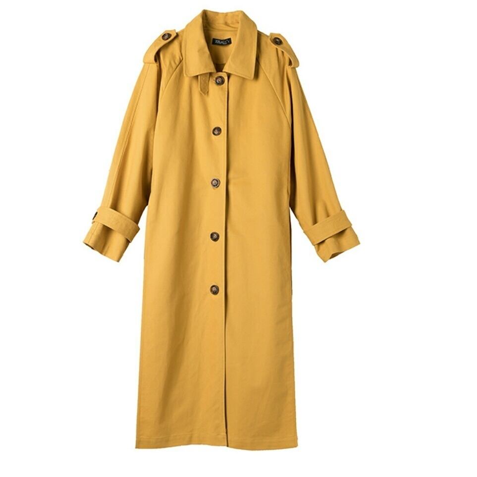 オフ&オフィスコーデ両方共◎シンプル黄色トレンチコート