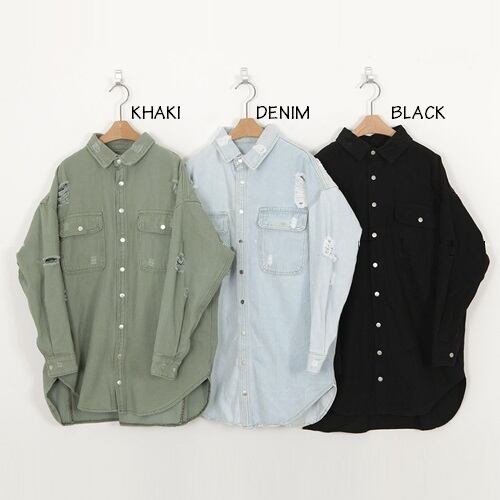 ダメージ加工★ヴィンテージバックパッチブラウス ブラック
