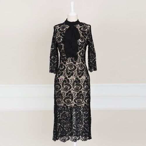 フリルネックポイントレースワンピース