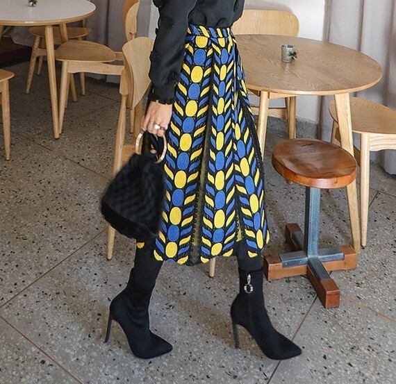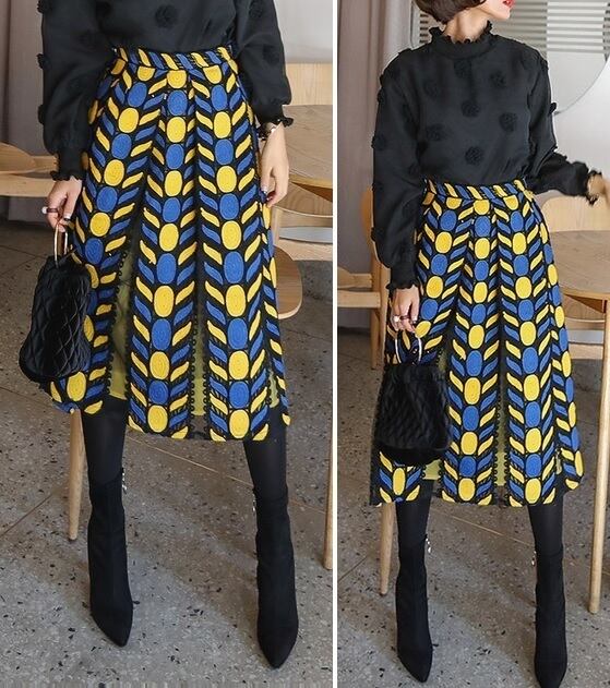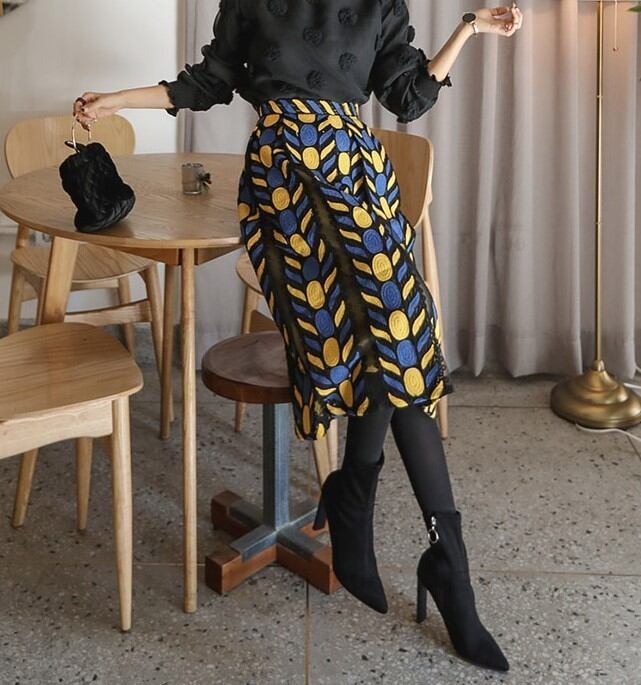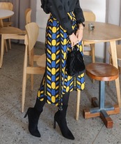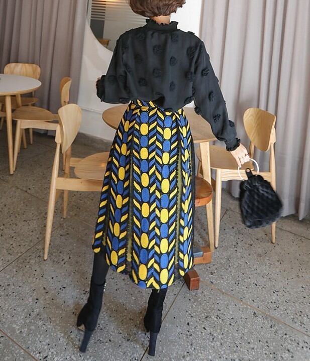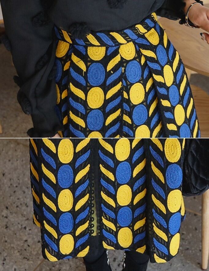 ユニークな 刺繍が可愛い スリット配色 スカート