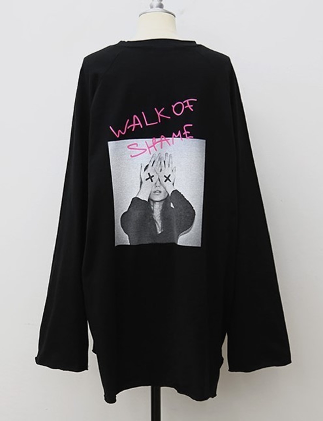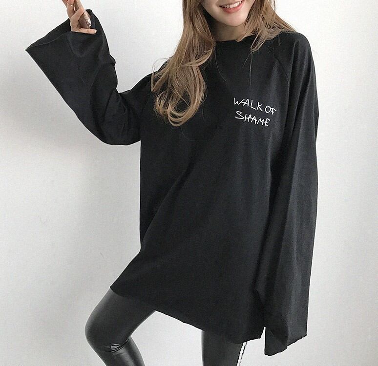 ロゴ&プリント ロング プルオーバー Tシャツ ブラック