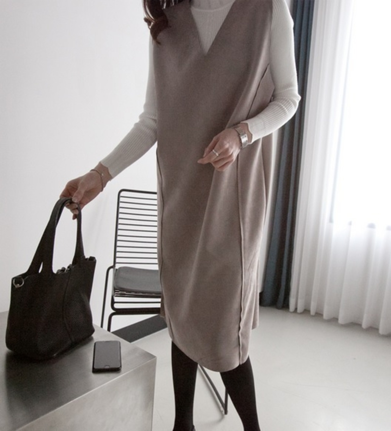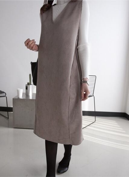 Vライン スウェード ベスト ワンピース