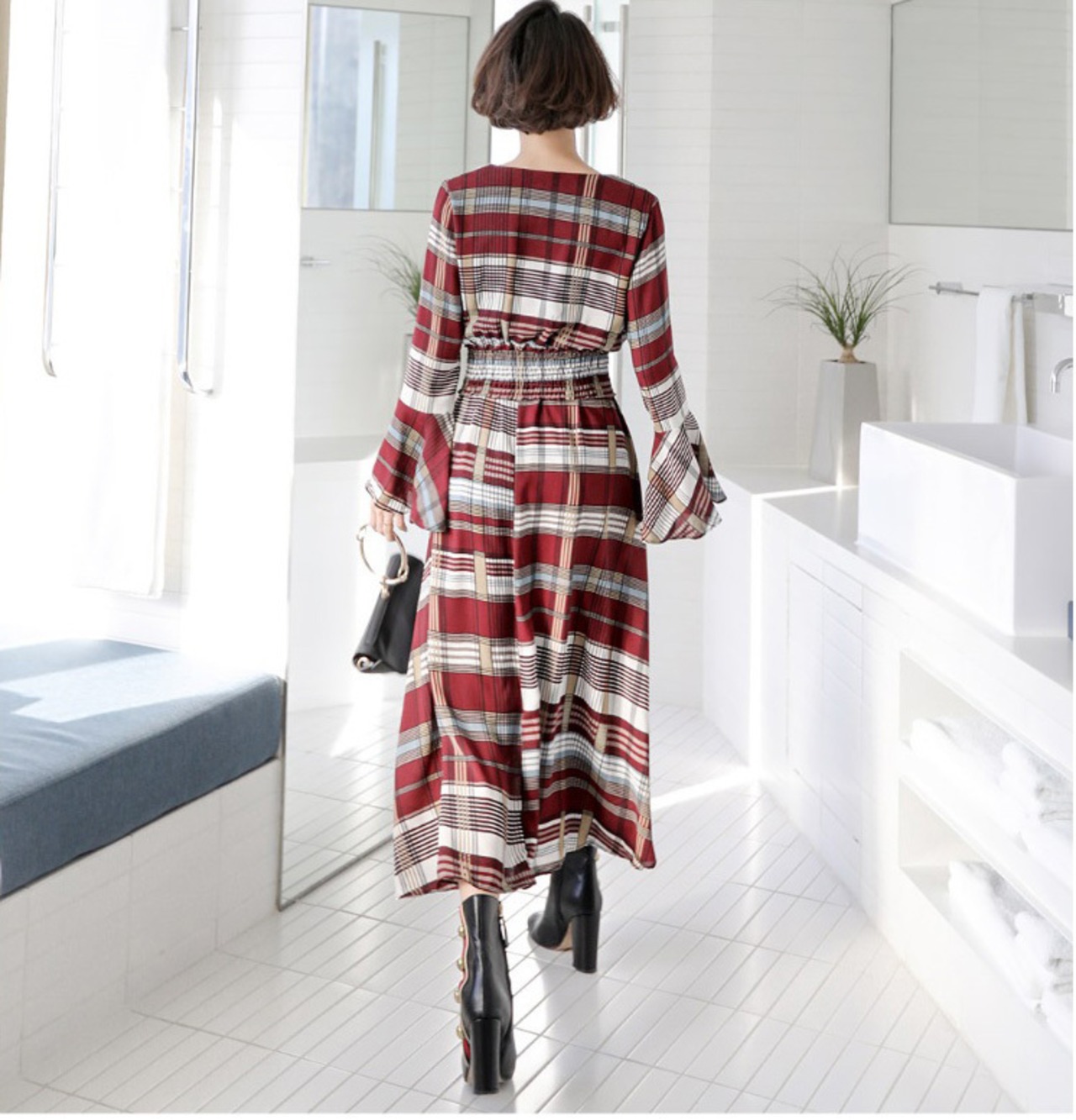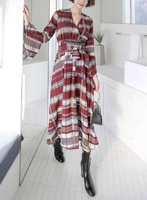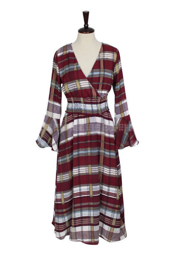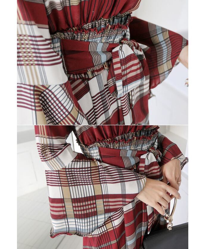 ウエストマーク♡マキシ丈チェックワンピース ワイン