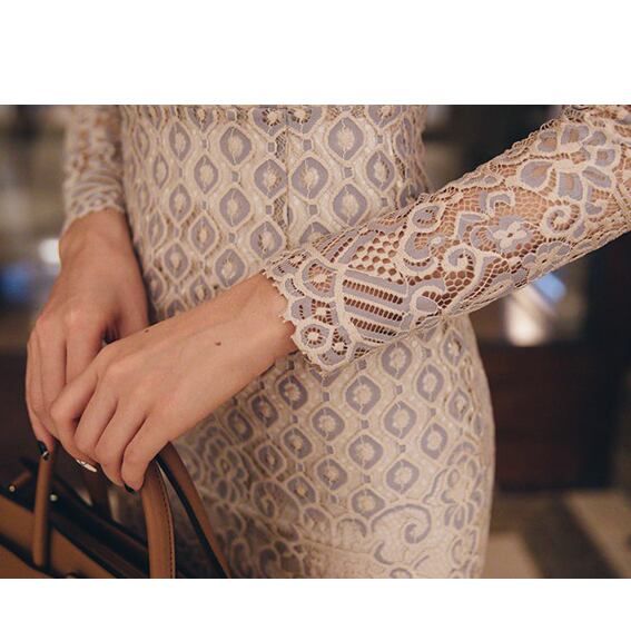 Vネック総レースタイトワンピース