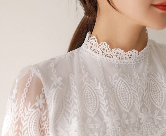 袖フリル♥ 花柄レース シースルー スリーブ ブラウス ホワイト