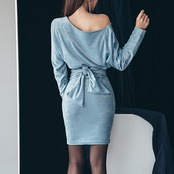 ベルベット素材★ワンショルダーリボンワンピース ミント