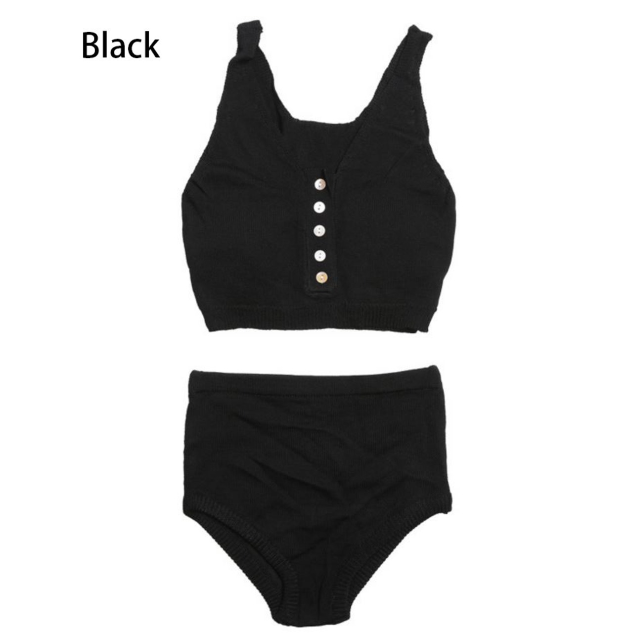 ニットフロントボタンハイウエストレトロビキニ ブラック