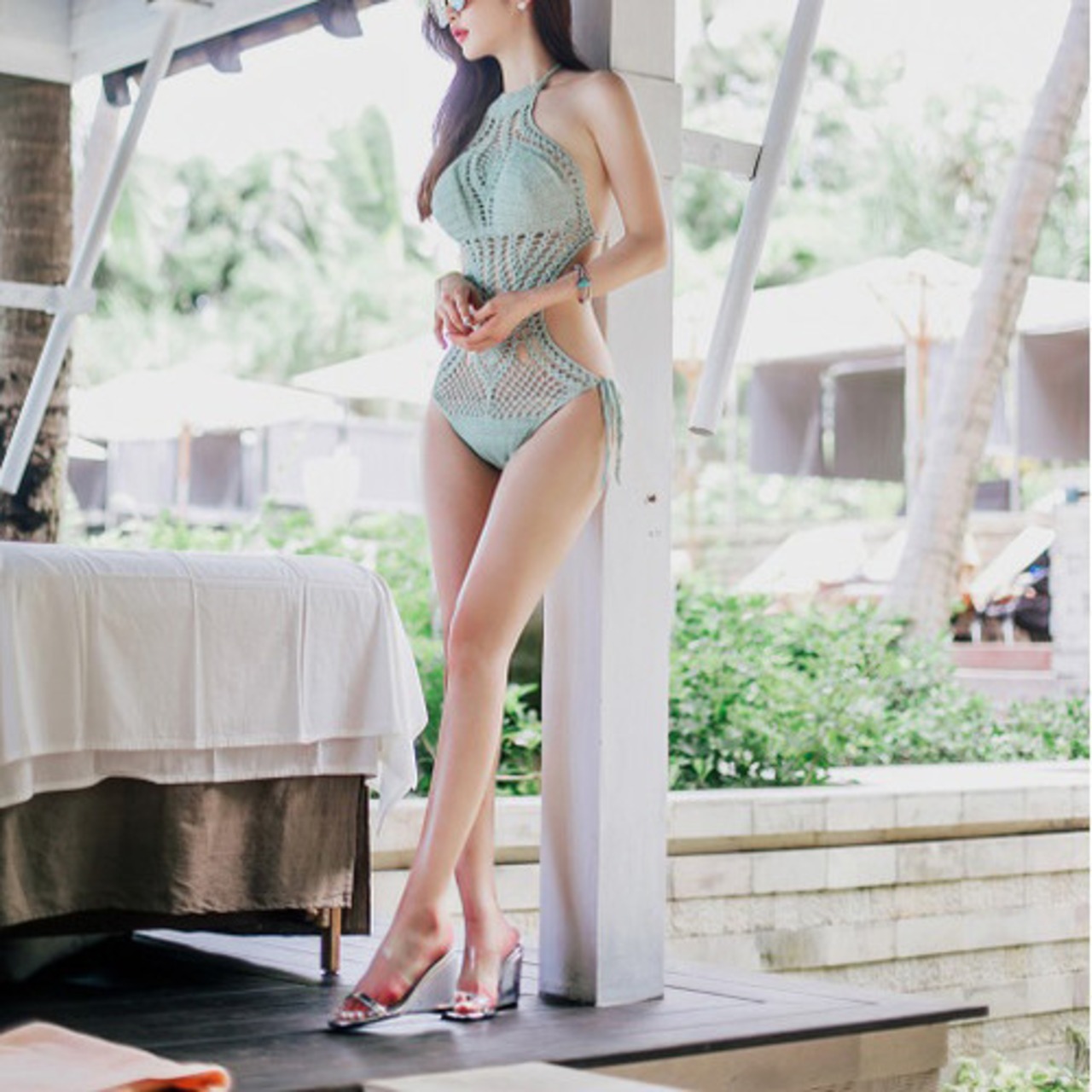 パンチングホルターネックタンキニ ミント