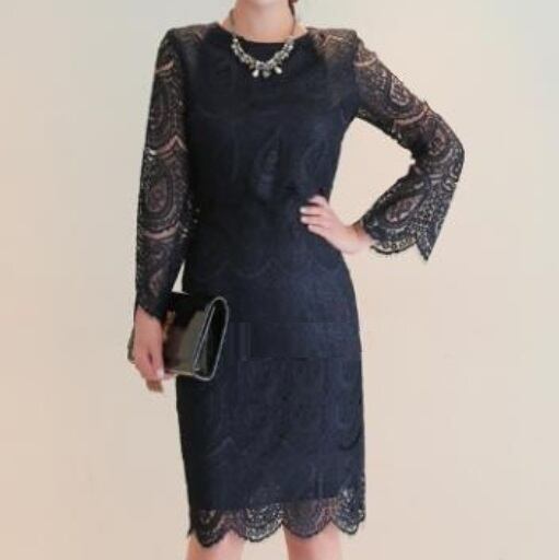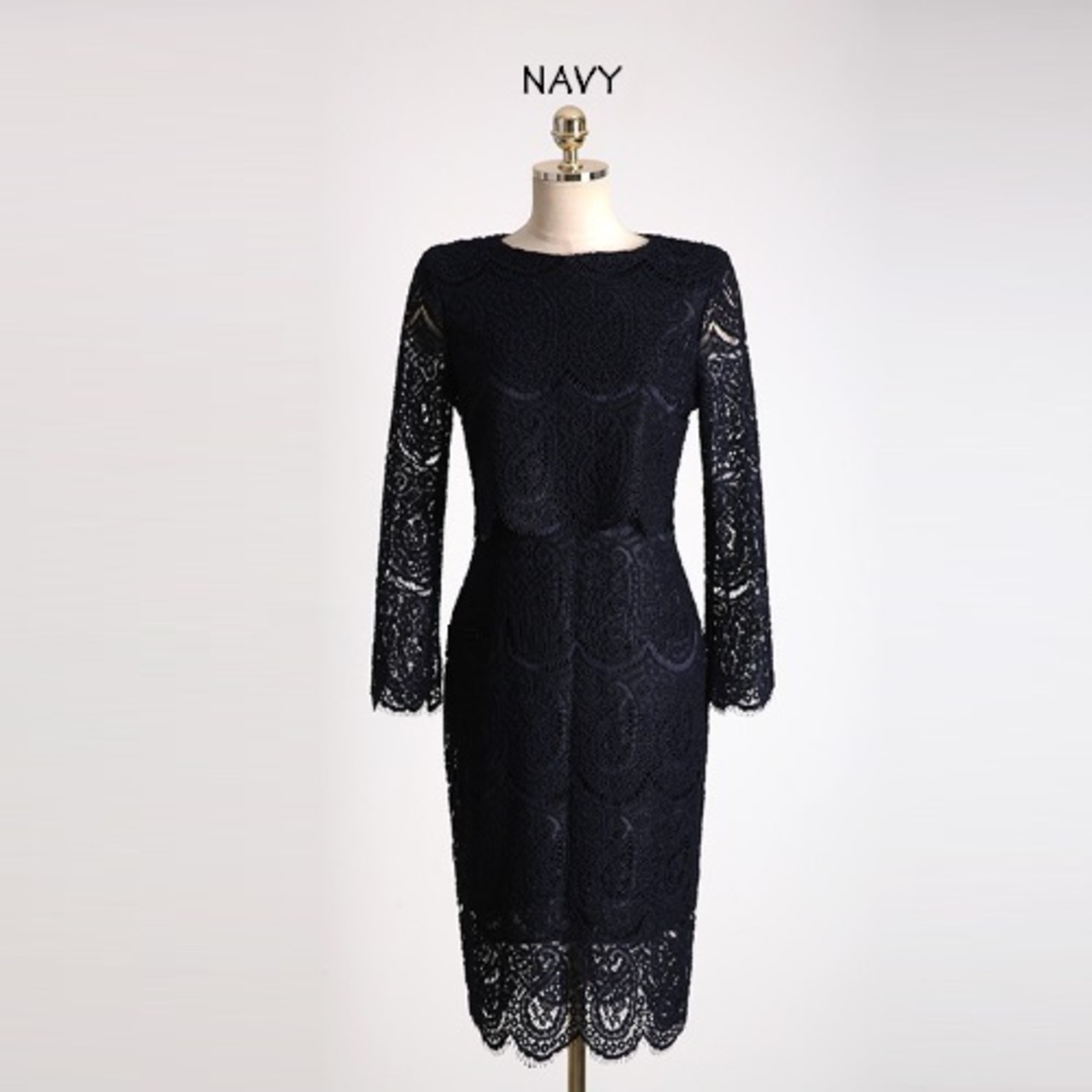 ラグジュアリーレースワンピース 立体的なシルエット ネイビー