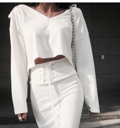 セクシーカジュアル★フード+コルセット風スカートSET アイボリー