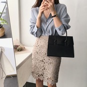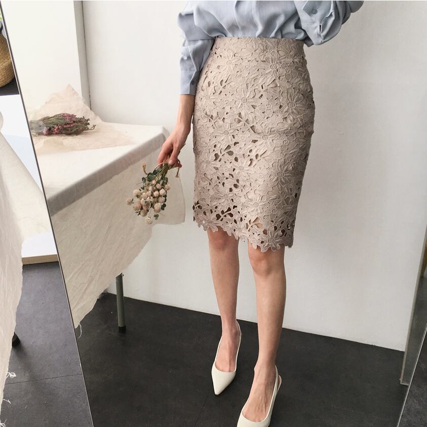 花柄レースタイトスカート ベージュ
