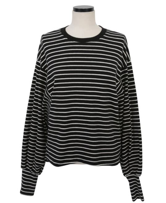 カジュアルなラブリーパフスリーブボーダー ブラック