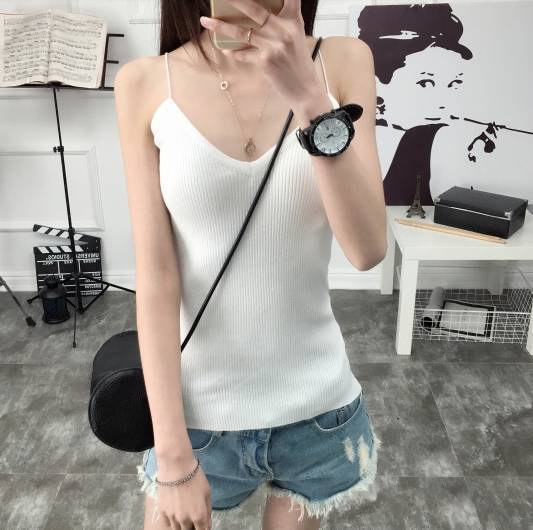 セクシー ニット キャミソール 肩紐タイプ スリム ホワイト