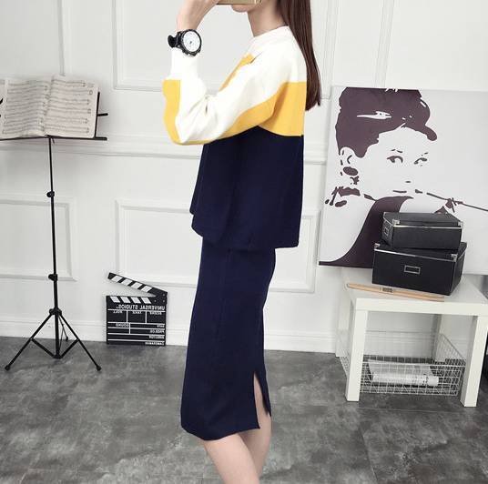 ニットセーター ビショップ袖 スリットスカート イエロー