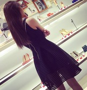 シースルー ワンピドレス かわいい ハイウエスト ブラック
