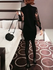 女性らしい 花柄 シースルー レース刺繍 ワンピース ブラック