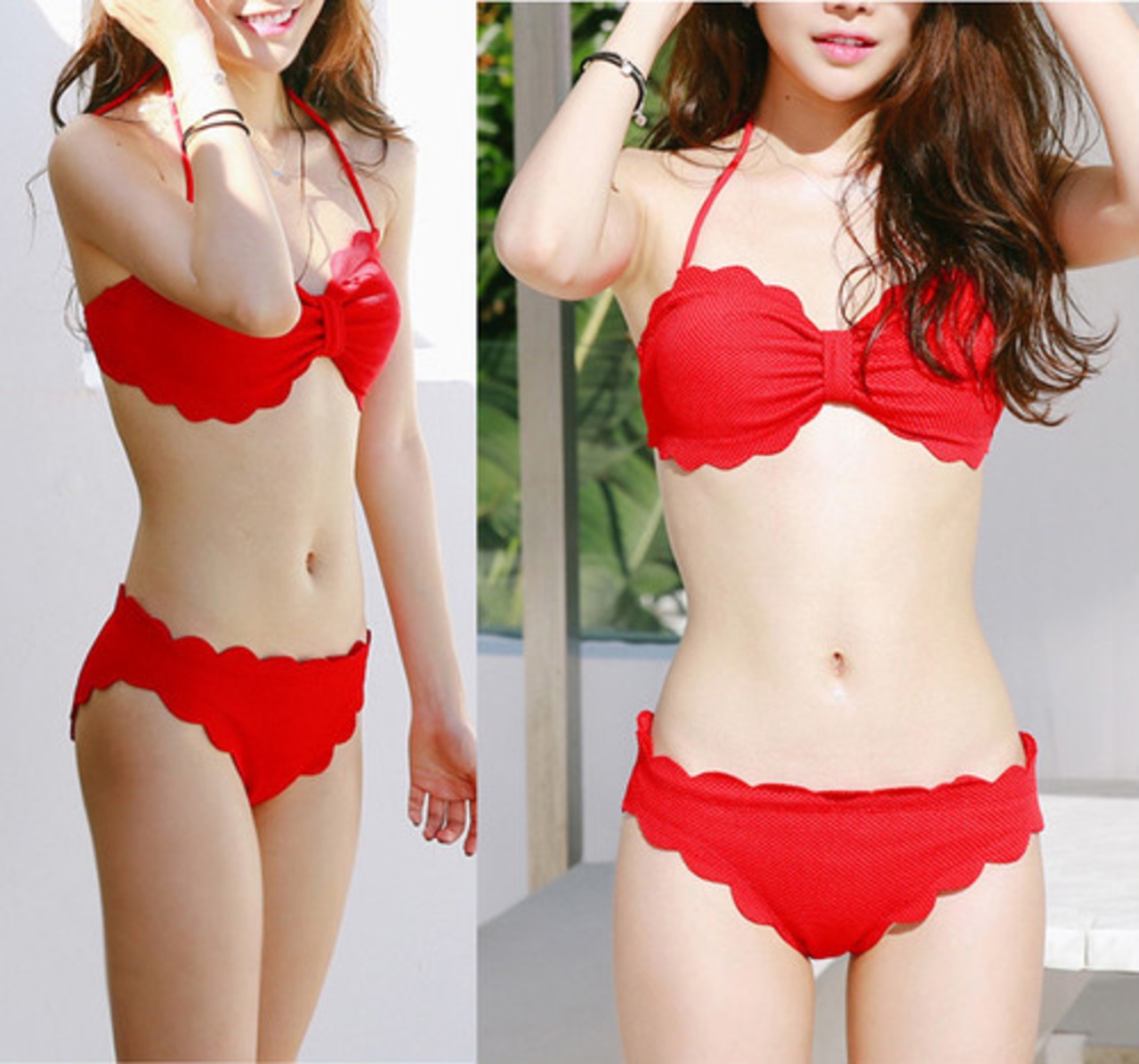 フェミニンルック★かわいらしいリボンビキニ レッド