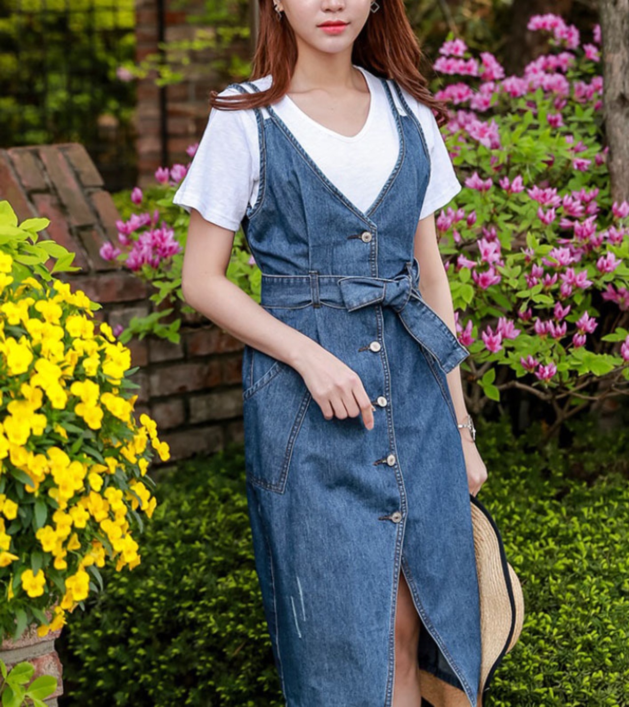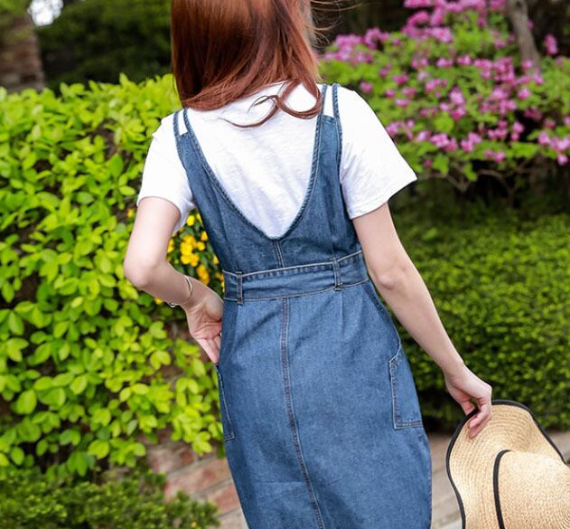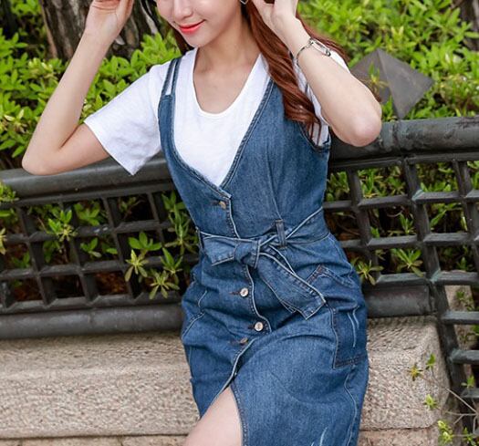 フロントスリット デニム リボン ワンピース