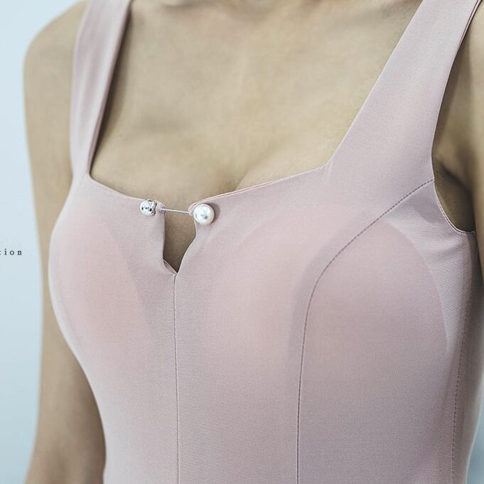 韓国製★胸元パールセンタースリットロングドレス インディピンク