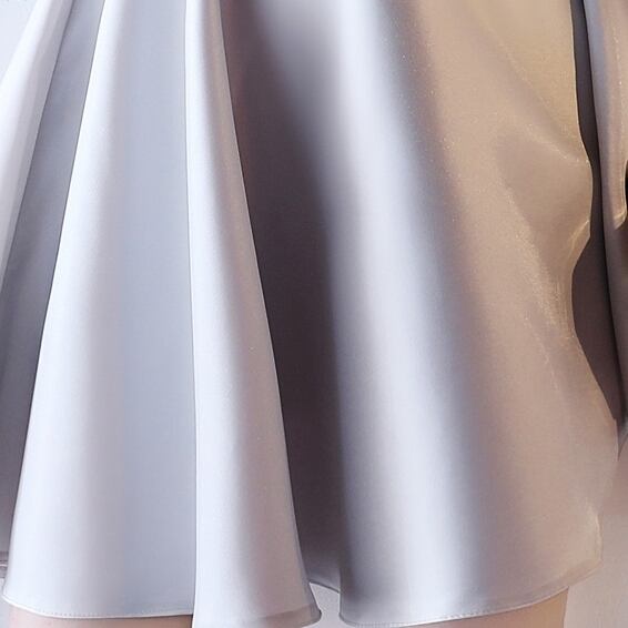 シルバー光沢のパーティードレス フレア 結婚式 二次会 キャバ