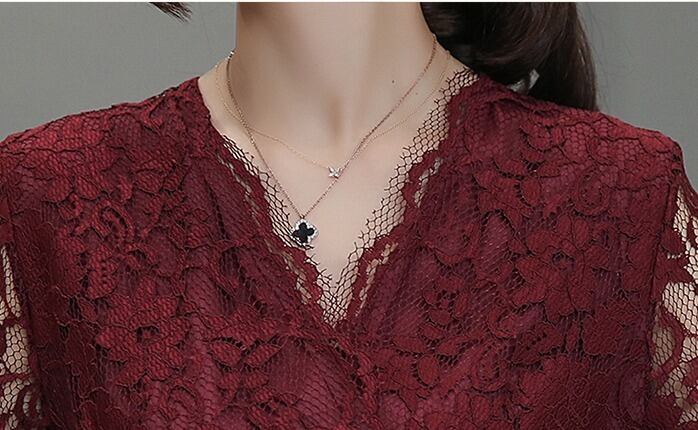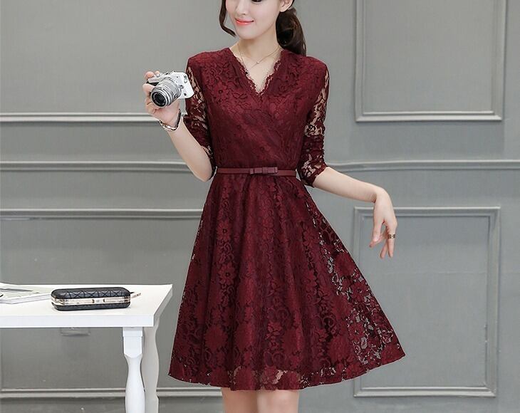高級 セクシーレース Vネック エレガントドレス レッド