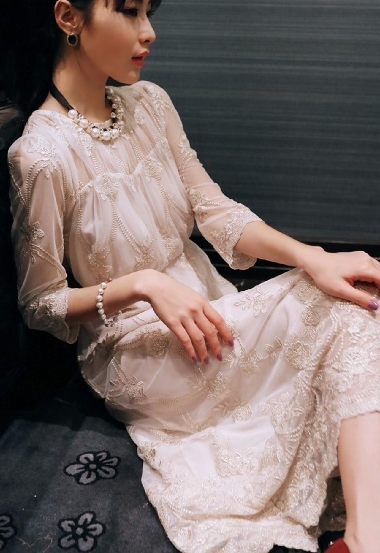 七分袖 マキシドレス ロングワンピース シースルー